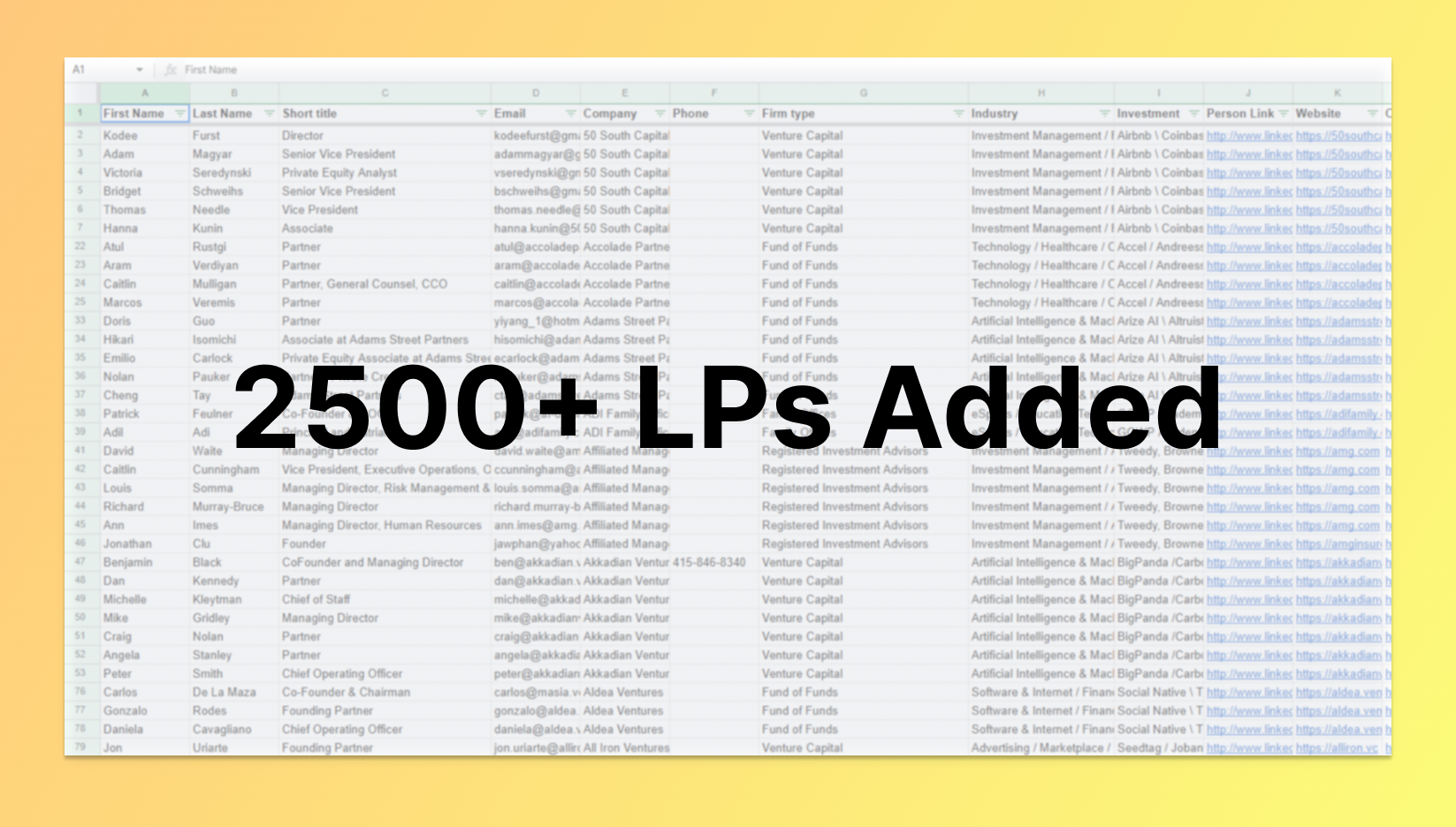 When you’re raising a fund, it’s not about how many names you collect—it’s about whether those investors are the right fit. The expanded dataset helps you: